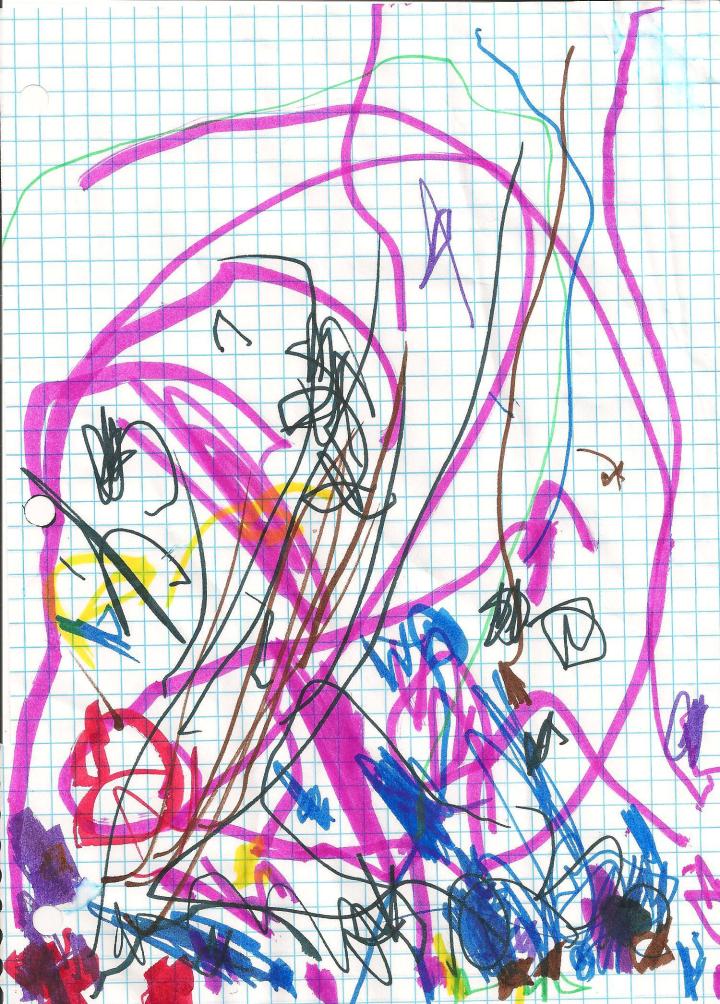 I remember watching Lucy color on a sheet of graph paper. The page was covered with the exception of two cookies that she drew for me when I came over to sit by her. What I found fascinating was that when she offered to “draw me some cookies”, she drew them directly on top of something else.