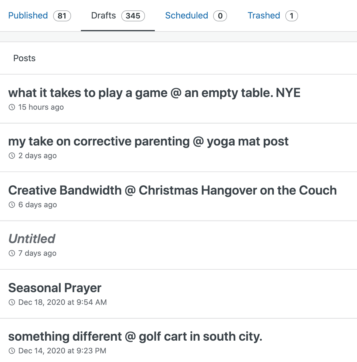 Before opening up a blank page, I took a look at what was in my drafts:
