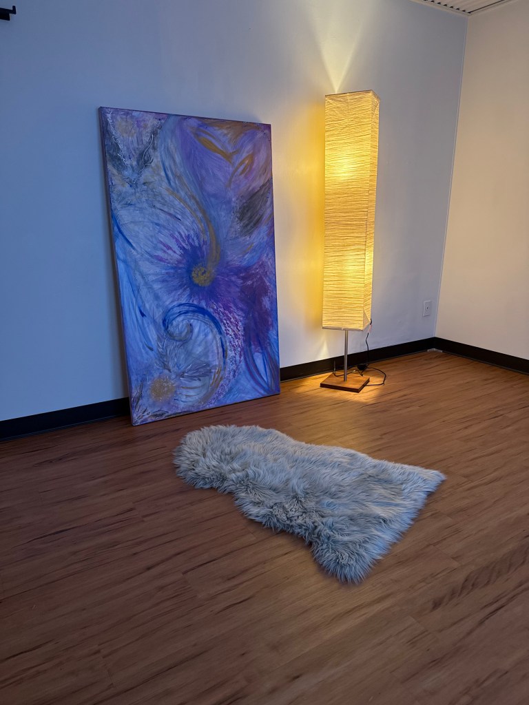 As I settled into the studio, I felt the nudge to breakdown the massage table, clear the front room with the windows and lay on the floor. I did. I opened the windows. I laid out a mat. I lit a candle. And right there, a domino of my life shifted and I felt the room become something new. It’s a place for prayer. An intimate place holding. A floor for conversation.